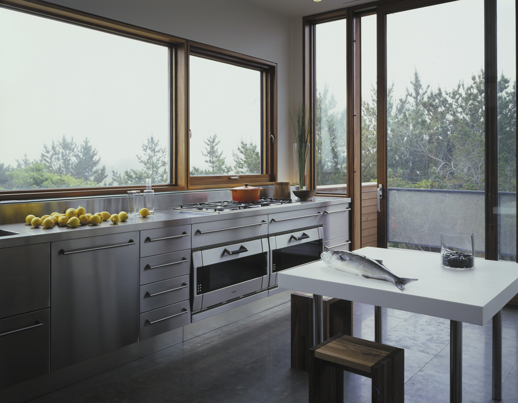 This led to the idea of lifting the main functions of the house above the ground and entering underneath them. The three levels of the house correspond with three levels of landscape: the woodland floor, the tree canopy, and the ocean view above the treetops.