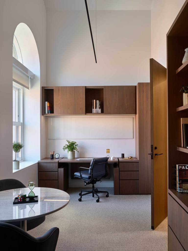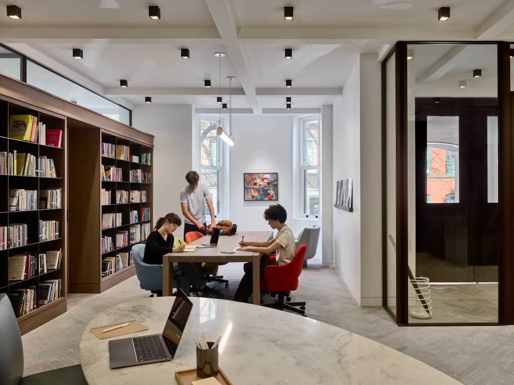 Tutoring offices on the upper floors incorporate the idiosyncrasies of the historic building’s design, like its eyebrow windows.