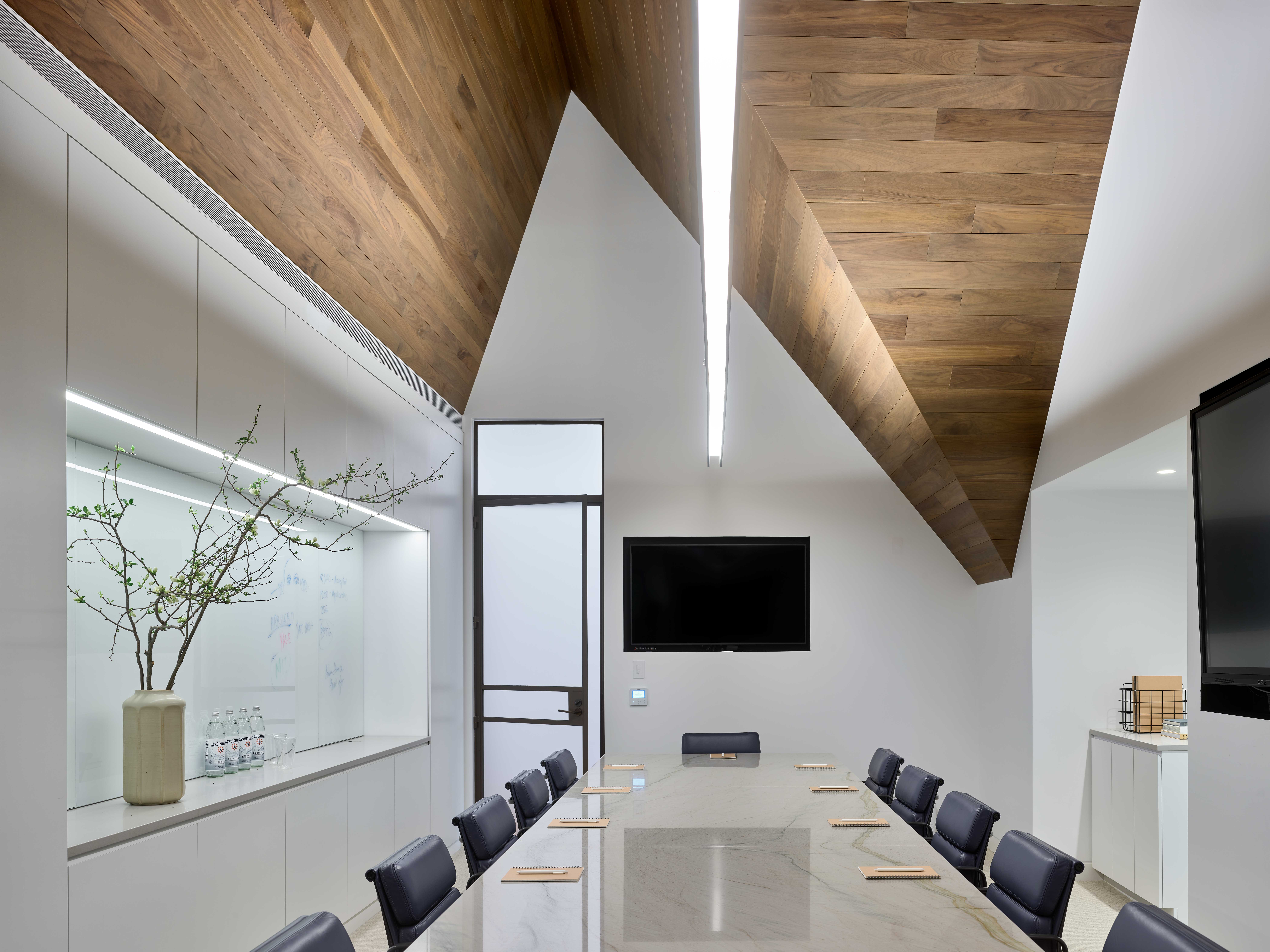 The boardroom on the top floor expresses the complex pitches of the roof…